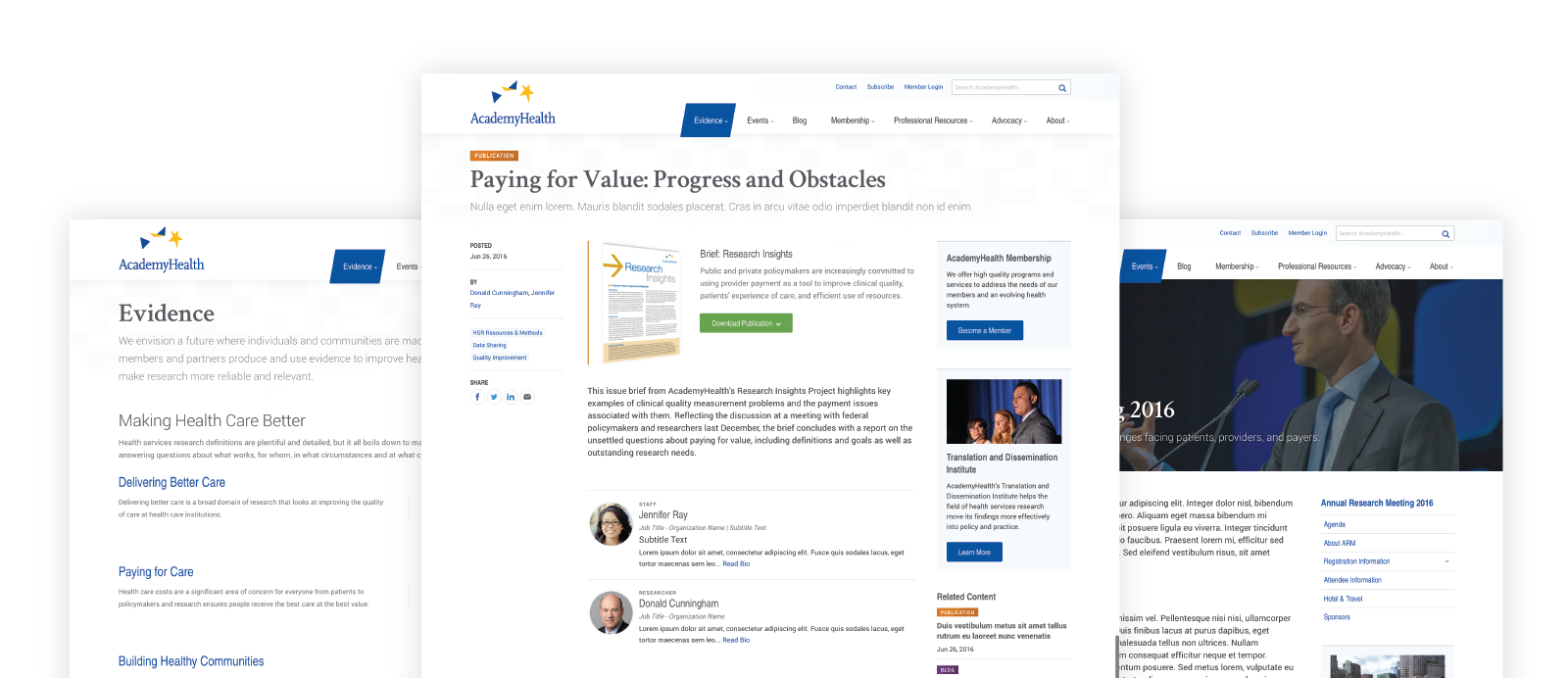 AcademyHealth was looking for a strategic design partner to help define their web presence and effectively demonstrate the value of AcademyHealth membership. To do so, they needed to make it easy to find and explore relevant HSR research and topics drawn from a variety of sources.The primary high-level goals for the redesign were to:
